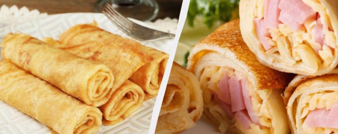 Tortitas rellenas – un plato universal que no aburre, no importa cuántas veces se prepare. Son a la vez sustanciosas y sencillas de preparar. Sugerimos hacer unos increíbles rollitos con queso y jamón – este tipo de relleno para tortitas es el más popular en los restaurantes. Seguro que su receta se convertirá en su favorita.