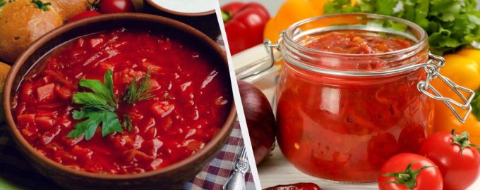 En plena temporada de verduras, le aconsejamos que prepare un preparado casero de borscht ucraniano. Para los cocineros ocupados es una auténtica salvación. Se utiliza de forma muy sencilla: se prepara el caldo y se hierven las patatas hasta que estén listas, y luego se vierten las conservas y la col, se deja hervir un par de minutos y ya está listo el borscht.