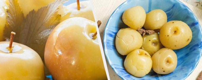 Las manzanas en escabeche o fermentadas son un aperitivo muy sabroso con grandes beneficios para el organismo. Para prepararlo, se vierte la fruta con mosto y se espera a que fermente. Las frutas listas tienen un sabor agridulce, con una ligera nota a pan, similar a la kvas o la sidra. Al morderlas, parecen carbonatadas y se deshacen agradablemente en la boca. Se pueden cambiar las proporciones de azúcar y sal para hacer un plato más dulce o más salado.