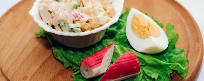 Una de las ensaladas más fáciles, rápidas y sencillas de preparar es la ensalada de cangrejo. A pesar de la sencillez de los productos y la preparación, será perfecta para una mesa festiva.